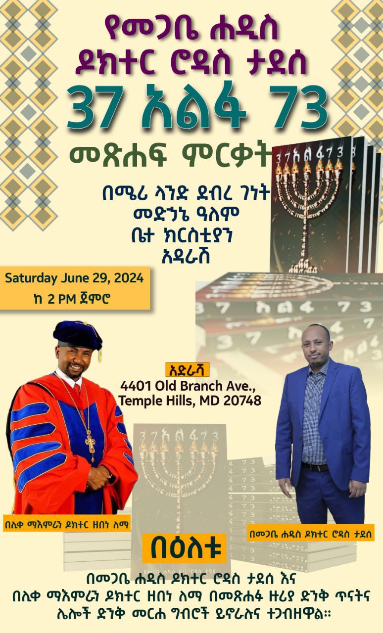 Megabe Haddis Dr. Rodas Tadesse, born and raised in Addis Ababa, excelled in education from an early age, attending Nigat Kokeb and Kokebe Tsibah schools. His passion for Ethiopian history and the Geez language led him to study ancient texts and translate them into Amharic. He attended Dagmawi Menelik School, where he learned from esteemed church fathers and mystics, deepening his knowledge of the Old and New Testaments, and published his first book.